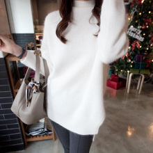 韩国秋冬新品加厚高领套头毛衣外套女宽松中长款纯色针织衫上衣潮