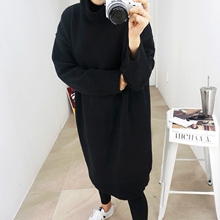 韩国秋冬纯色毛衣裙宽松针织裙大码连衣裙套头中长款高领打底裙女