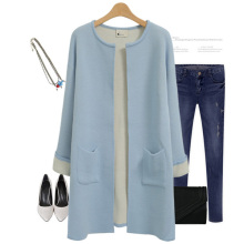2015秋冬装韩国代购简约宽松中长款毛衣开衫毛线加厚针织衫外套女