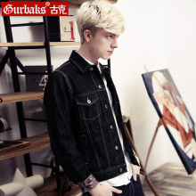 2017潮男春装黑色牛仔外套男夹克复古花卉牛仔衣男韩版外套