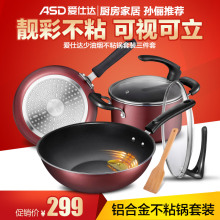爱仕达套装锅火龙眼不粘无烟不沾锅具炒锅煎锅汤锅三件套锅具套装