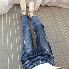 2016秋季新品韩版磨破牛仔裤女宽松大码哈伦裤磨白小脚垮裤长裤潮