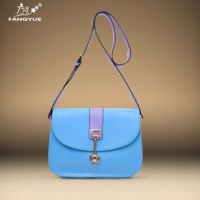方月新款时尚女包牛皮斜挎包小包 拼接撞色女式单肩包斜跨小包包