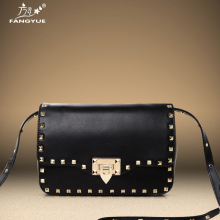 真皮女包手提包女士包包女2017新款头层牛皮简约铆钉女单肩斜挎包