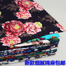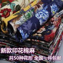 田园风民族风DIY手工布料面料中国风花卉服装亚麻印花棉麻布料