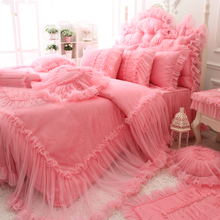 韩式田园短毛绒四件套 加厚珊瑚绒 法莱绒水月公主 床上用品