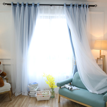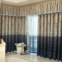 现代简约蓝色飘窗窗帘儿童房男孩女孩布料特价遮光平面窗落地窗