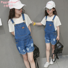 母女装2017新款夏装背带裤亲子短裤破洞牛仔裤子中大童潮款亲子装