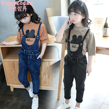 女童春装背带裤套装2017童装新款中大童韩版儿童牛仔裤长裤两件套