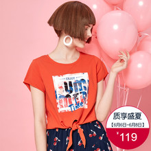 【官方折扣店】诗凡黎2017夏系带T恤短袖上衣显瘦女7160531108141