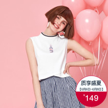 【官方折扣店】诗凡黎2017夏无袖针织印花小上衣女7160421109021