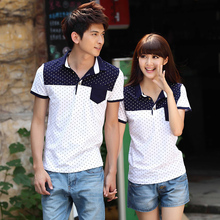 情侣装夏装 2017新款韩版夏季短袖T恤上衣翻领女装大码半袖班服