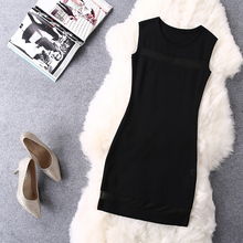 2017春夏韩版小香风冰麻连衣裙修身网纱镂空小心机无袖针织包臀裙
