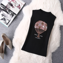 2017春秋新款韩版重工钉珠连衣裙修身包臀立领无袖背心针织打底裙