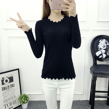 秋衣韩版外穿打底衫女士套头显瘦紧身长袖t恤上秀木耳边针织小衫