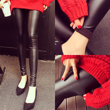 秋冬款加绒加厚百搭打底裤女外穿弹力紧身小脚pu皮裤显瘦铅笔长裤