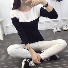 韩版秋衣套头打底针织衫女修身显瘦长袖上衣短款内搭条纹毛衣女潮
