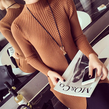 秋冬款女装韩版内搭打底衫中长款显瘦女毛衣紧身针织性感连衣裙潮
