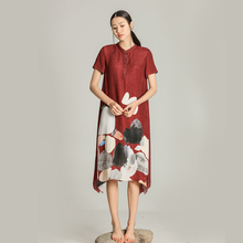2017夏短袖真丝连衣裙女中长款宽松大码印花v领休闲时尚桑蚕丝裙