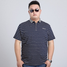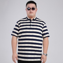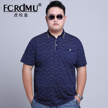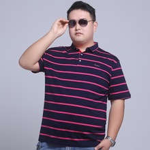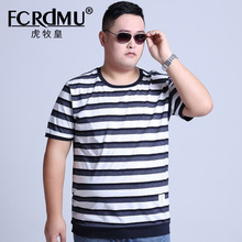虎牧皇超大号男士翻领短袖条纹T恤加肥加大码夏装肥佬胖哥棉汗衫