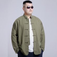 中年商务休闲唐装衬衫男加肥大号手工盘口经典中式大码长袖衬衫肥