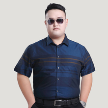 中老年胖父亲男士加肥加大号短袖商务T恤加大码肥佬条纹半袖棉