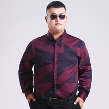 加肥加大号潮胖子个性图秋款长袖衬衫时尚肥佬大码男士衬衣宽松版