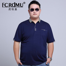 虎牧皇特体男肥佬超肥超大号短袖T恤翻领口袋加肥加大码中老年夏