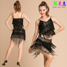 拉丁舞新款套装 演出服装女成人 拉丁裙女流苏亮片表演服比赛服