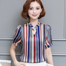 夏季大码短袖宽松显瘦上衣服雪纺衫30岁T恤衬衫年轻妇女妈妈装