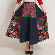 2017春装民族风女装拼色百搭长裙文艺大摆裙棉麻中国风印花半身裙