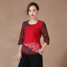 韩紫桐 2017春秋民族风女装上衣中式女士中国风棉麻刺绣花唐装t恤