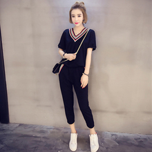 2017春夏时尚休闲运动服套装学生韩版宽松短袖t恤九分裤两件套女
