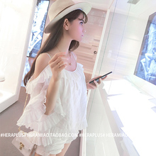 性感名媛露肩吊带甜美公主雪纺衫一字领上衣气质宽松娃娃衫仙女夏