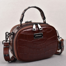 新款高端头层油腊牛皮真皮波士顿枕头迷你小包单肩手提鳄鱼纹女包