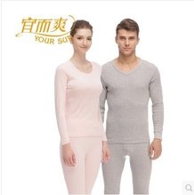 宜而爽 男士女士秋衣秋裤弹力纯棉圆V领打底薄款情侣保暖内衣套装