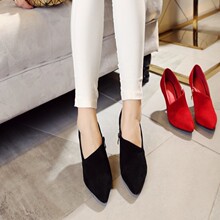 欧美2016春秋新款真皮高跟单鞋女士尖头斜口性感红色婚鞋细跟潮鞋