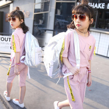 儿童装女童夏装套装2017新款韩版大童时尚女孩衣服短袖运动两件套