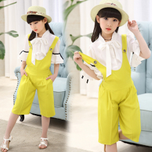 儿童装女童夏装2017新款韩版大童女装休闲套装潮宝宝背带裤两件套