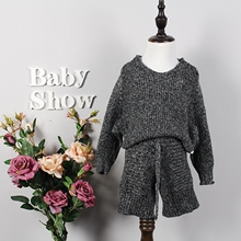 儿童春装套装女童时尚针织长袖+短裤宝宝童装韩版休闲两件套毛衣