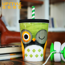 夏日果汁冷水杯冷饮玻璃杯带把带盖公鸡杯吸管杯450ml透明水杯
