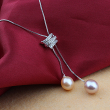 促销 天然珍珠吊坠 s925纯银项链 女锁骨10-11MM正品水滴形送妈妈
