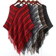 秋装女流苏披肩斗篷拼色毛衣V领套头蝙蝠针织衫外套线衣秋冬女装