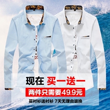 2017春季男式衬衫男长袖修身套装青少年衬衣韩版潮流帅气男装百搭