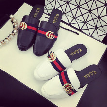 欧洲站春夏新款拼色包头半拖鞋凉拖鞋平底平跟韩版女鞋豆豆拖鞋潮
