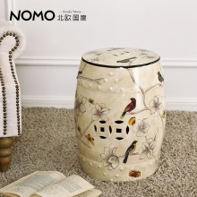 北欧国度 美式乡村复古梳妆换鞋凳 花鸟陶瓷鼓凳 陶凳凳子鼓墩