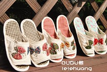 热卖木地板绗缝拖鞋软底 防滑棉布底拖鞋 居家女 可机洗 日单蝴蝶