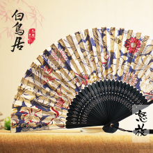 【白鸟居】怒放 高档日式扇子 和风进口棉布折扇 京都礼品竹扇
