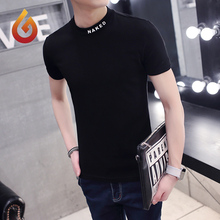 夏季青少年短袖t恤男高领修身韩版社会小伙半袖打底衫紧身体恤潮