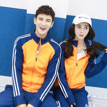 春秋款韩版情侣装男女卫衣加绒厚运动套装开衫立领学生班服校服潮